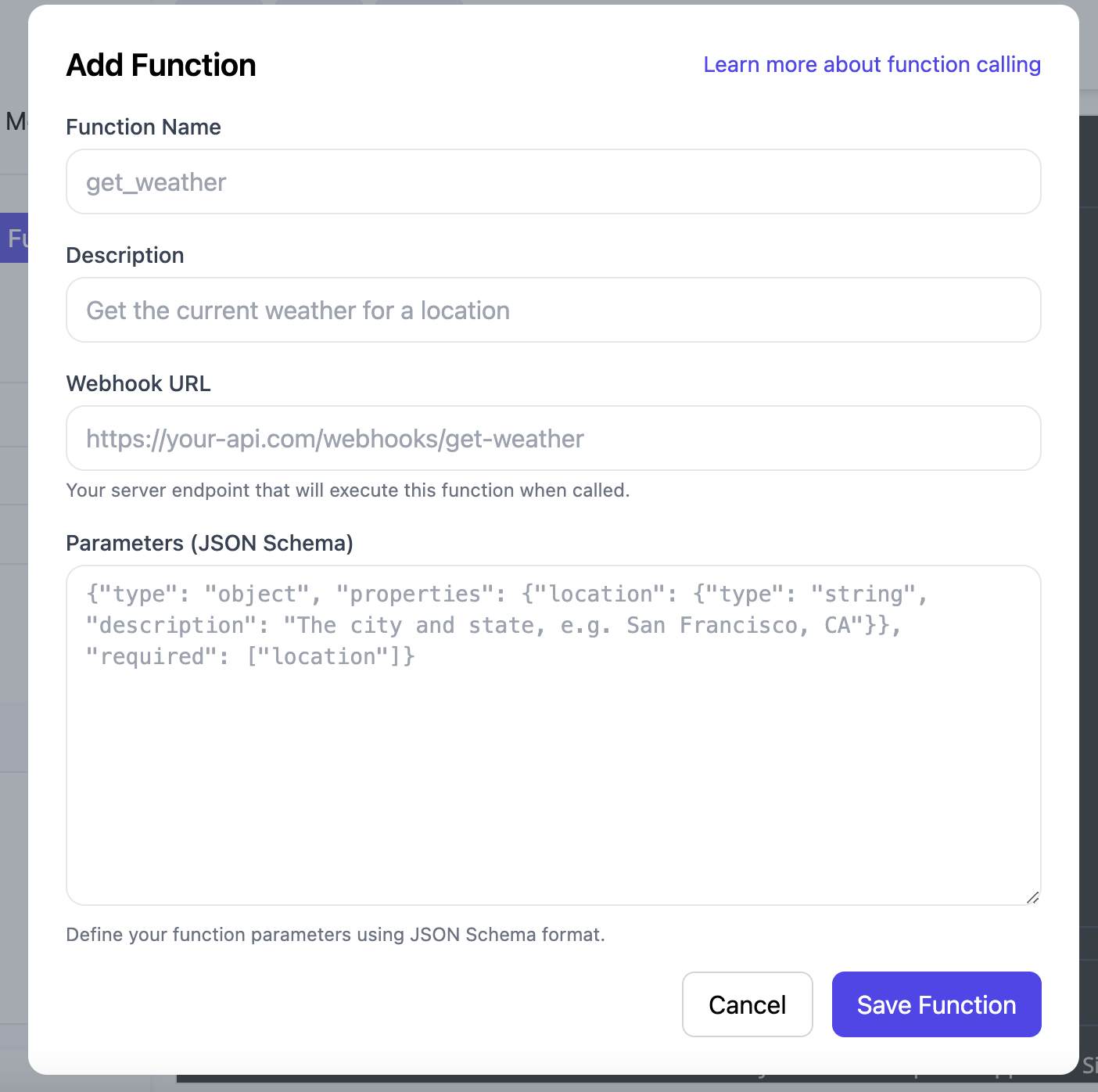 Function calling allows your AI apps to perform specific actions through webhooks based on user interactions. This enables more dynamic and interactive experiences with your apps.