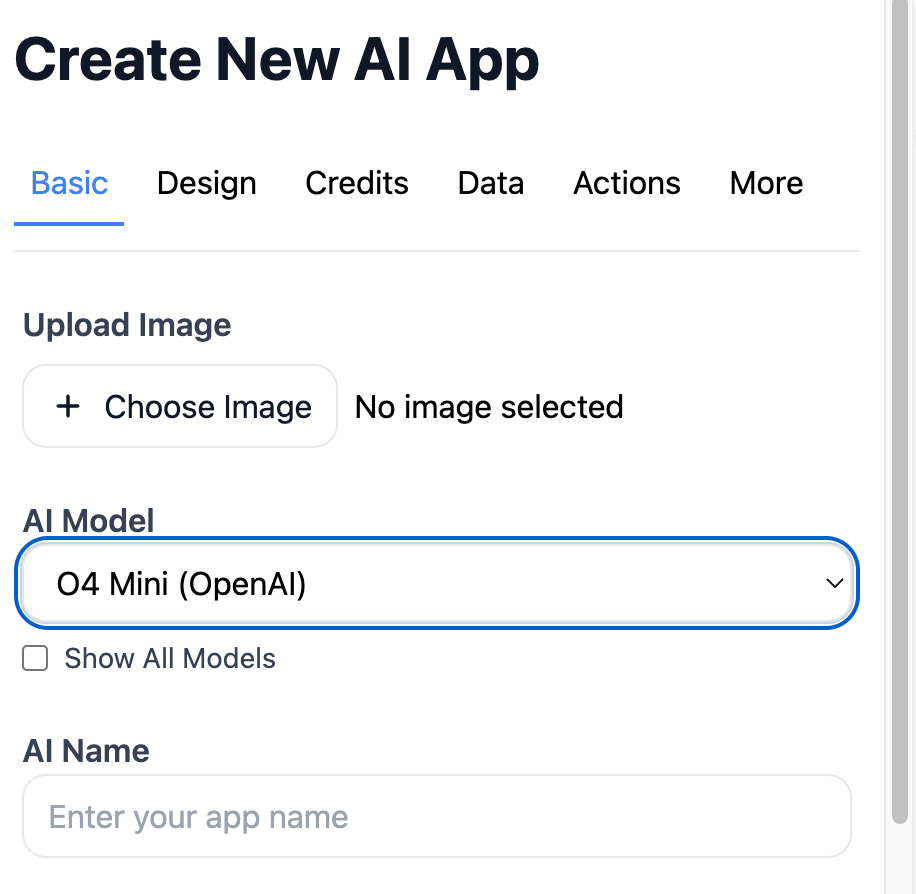 When building a new AI app (or editing an existing one), simply select o4-mini from the AI model dropdown — your app will instantly switch to this lightning-fast, smart model.